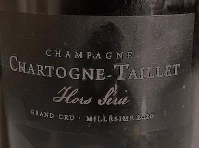 Cette bouteille de Champagne "Hors Série" 2020 du domaine Chartogne Taillet est un Blanc de Blancs grand cru. En revanche si la contre étiquette indique Avize comme terroir et le lot AVI20 une plaque sur le col indique Avize 80 % et Oger 20 %. Mise en bouteille en juillet 2021 et dégorgement en février 2025 avec un dosage de 1 g/l. A noter que le millésime 2020 n'est pas indiqué sur le bouchon. Robe or jaune clair et mousse très fine et active en septembre 2025. C'est un Champagne très minéral au départ, crayeux, avec des notes d'agrumes. On ne ressent pas la richesse de certains vins de 2020. Le vin, certes déjà très intéressant, semble toutefois encore dans une phase entre deux et nécessite d'être attendu pour se révéler pleinement.