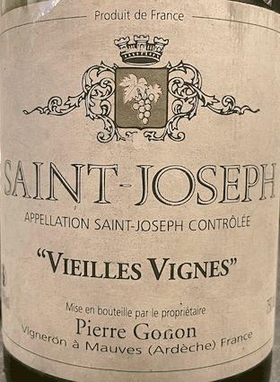 Cette rare cuvée "Vieilles Vignes" millésime 2010 du Saint Joseph rouge du domaine Pierre Gonon arborait une belle robe rubis sombre, brillante, en novembre 2025. Nez complexe aux arômes de petits fruits noirs, d'olive, d'épices, floral. En bouche le vin offre une texture suave, de bonne richesse (13°), avec des tanins qui la structurent. Belle allonge, grand vin intense et droit, encore jeune qui se goûte très bien à ce stade.